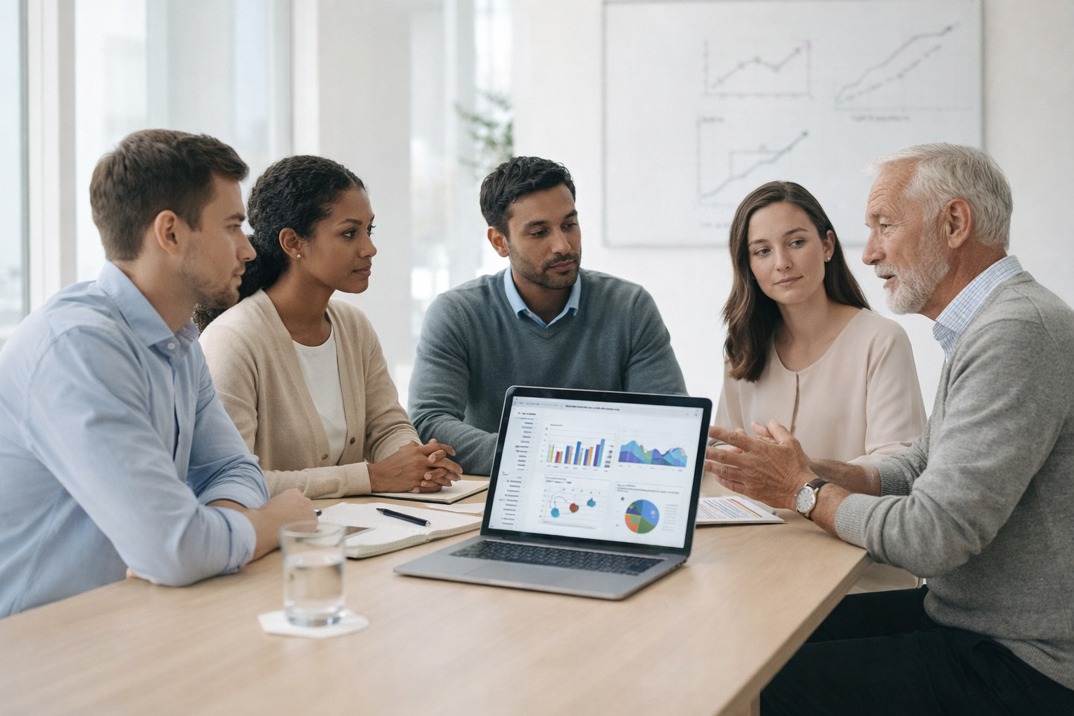 We meten succes op meerdere niveaus: gebruik, tevredenheid en impact. Denk aan data uit Microsoft 365, feedback van gebruikers en resultaten uit adoptiescans. Zo maken we groei en rendement zichtbaar.